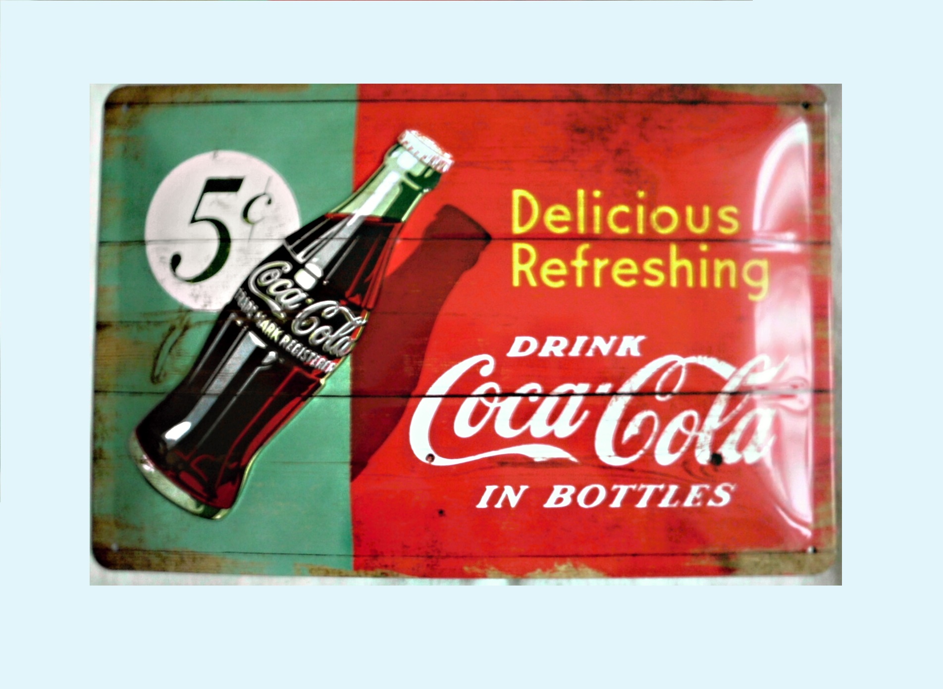 Originální plechová cedule s retro motivem Coca Cola, vyráběna v Německu.