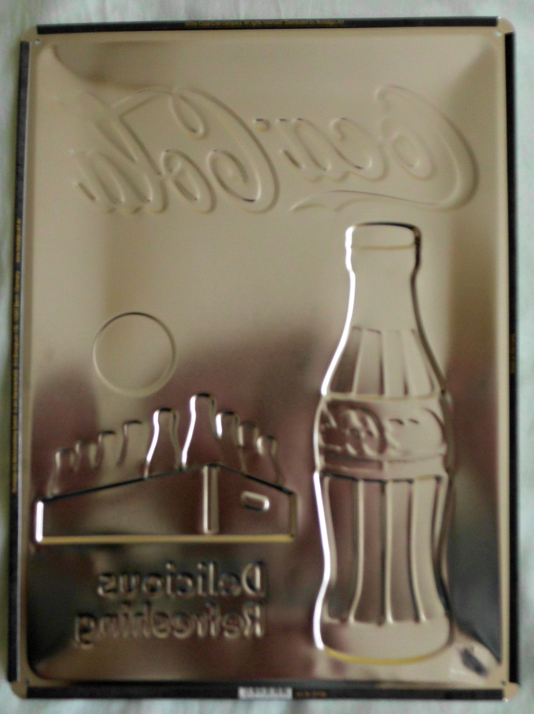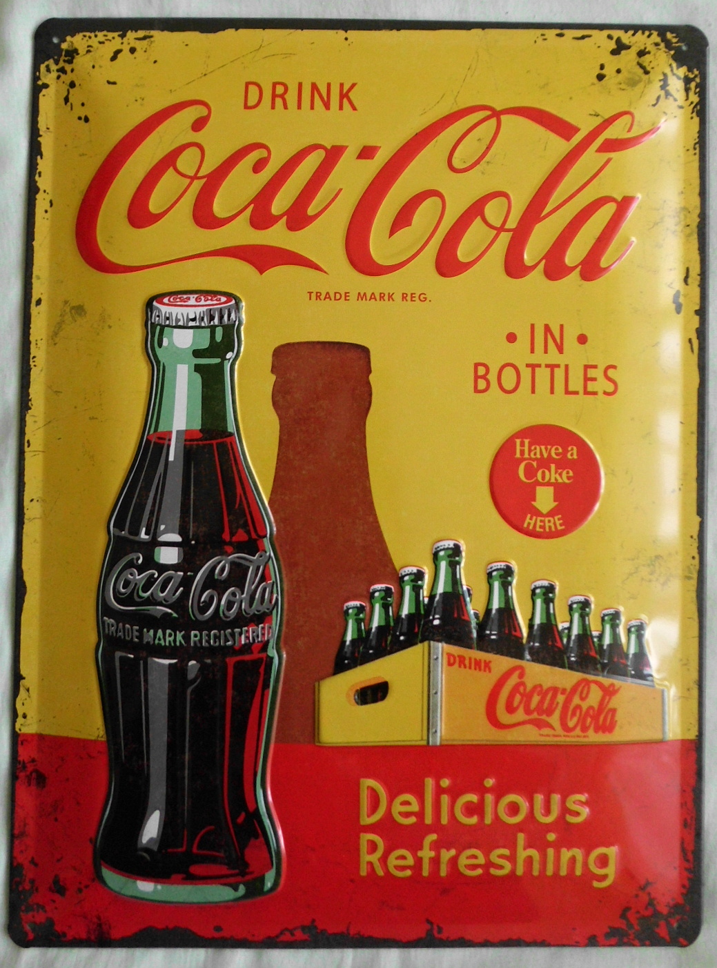 Originální plechová cedule s retro motivem Coca Cola, vyráběna v Německu.